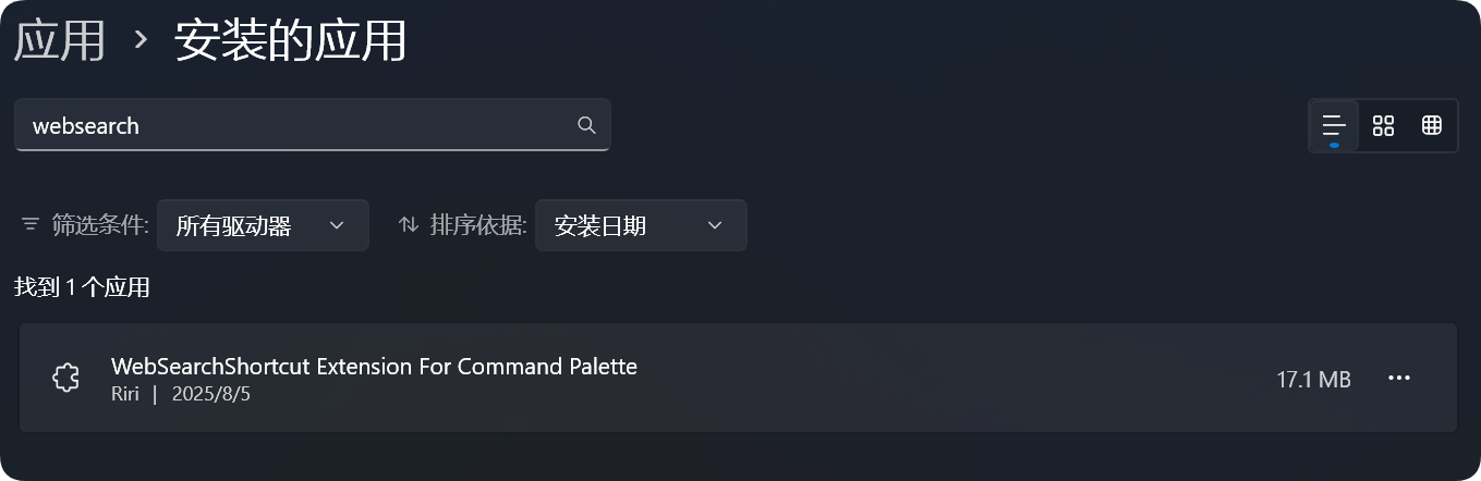 若想卸载拓展可前往Windows设置-应用-已安装的应用进行卸载